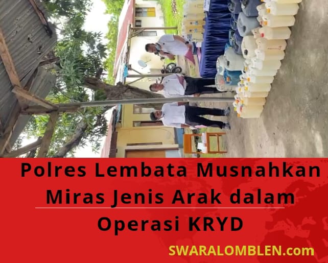 LEWOLEBA, SWARALOMBLEN.com—Kepala kepolisian Resor (polres) Lembata Musnahkan Miras Jenis Arak Dalam Operasi KRYDt Lembata Selasa 17 Maret 2026 memusnahkan mimuman beralkohol jenis arak dalam operasi KRYD yang dilaksanakan pada Oktober-November 2025 di wilayah hukum polres Lembata.